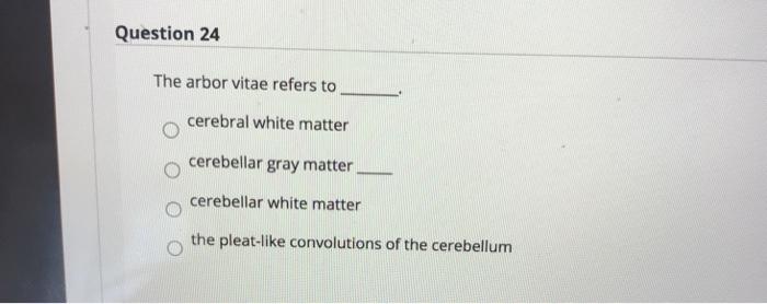 Solved Question 24 The Arbor Vitae Refers To Cerebral White Chegg Com
